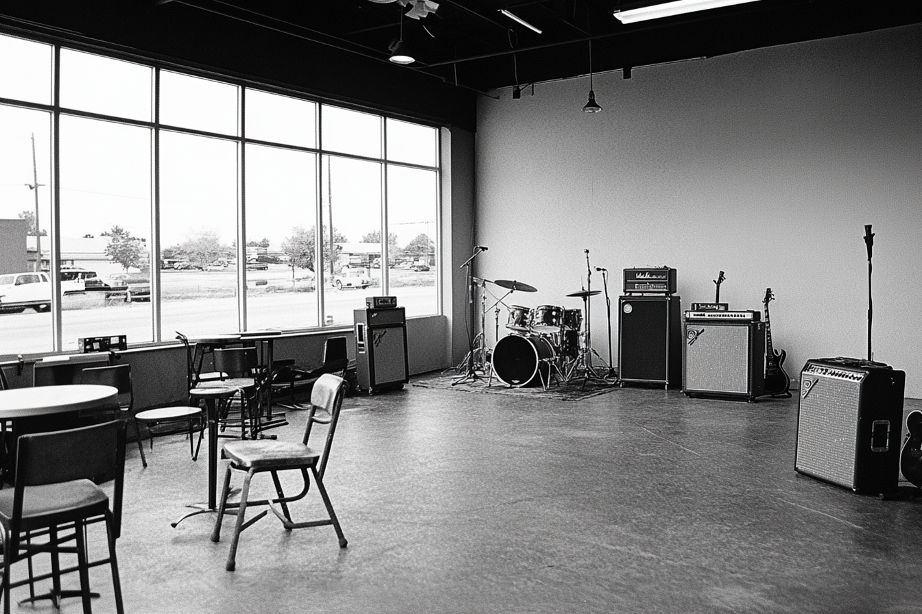 It’s still pretty bright in the shop during our set. This coffee shop has two options for lights - on or off. They’ve opted to leave them on, and it’s bright enough that none of us are quite certain exactly how to behave. In a dark basement we’d be jumping all over each other. On a dark stage, our friends would be running up and taking their turns diving off the monitors, but in this nice shop, we all feel exposed. The lights are in strong contrast to the dark of the night as cars whip past on the interstate off in the distance. From where I stand, I can see everyone here. I find myself very aware how well they can see me, and in a strange way this boosts my confidence a bit more. Now you can hear, and see, my loud guitar parts. At a certain point I look over to my right side and I can see our reflections in the shops floor to ceiling windows. This side view of our three-piece band boosts my confidence even more. Throughout my youth, it’s these moments where I’ve always found my confidence. With a guitar on, I’ve always felt utterly comfortable. It’s around this time of yoga-like inner-self reflection that I spot a pretty girl in the crowd with long dark hair who I’ve never seen before in my life. I hope that Donald was right, and that the guitar is loud over there.